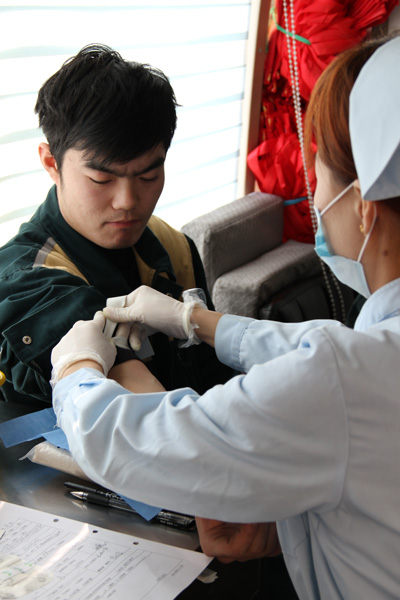 經(jīng)過閱讀學(xué)習(xí)獻(xiàn)血基本常識,填寫登記表,例行體檢幾個(gè)環(huán)節(jié)后,志愿者們按順序登上了獻(xiàn)血車。他們在獻(xiàn)血時(shí)個(gè)個(gè)積極勇敢,情緒穩(wěn)定,臉上洋溢著自豪的笑容,獻(xiàn)血結(jié)束后,在現(xiàn)場領(lǐng)取了濟(jì)寧市中心血站發(fā)放的無償獻(xiàn)血證。本次獻(xiàn)血活動(dòng)有166名職工自愿報(bào)名參加,其中趙康、吳振興等志愿者更是有多次無償獻(xiàn)血的經(jīng)歷。
