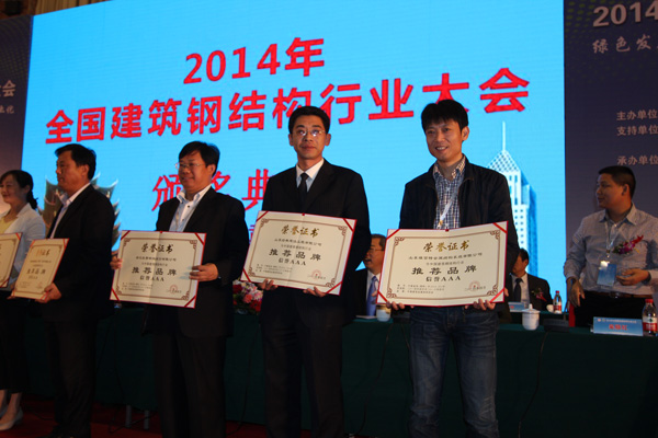開幕式上,中國建筑金屬協(xié)會對鋼結(jié)構(gòu)企業(yè)和個人進行了頒獎,山東經(jīng)典建設工程有限公司被授予2014-2016年中國建筑鋼結(jié)構(gòu)行業(yè)推薦品牌信譽AAA企業(yè),經(jīng)典集團副總經(jīng)理鄭建康上臺領取了證書。經(jīng)典集團還參加了“四新”推廣交流會、技術(shù)論壇、鋼結(jié)構(gòu)配套產(chǎn)品展示活動等。