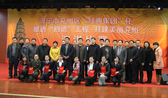 濟寧市兗州區“經典集團杯”推進“四德”工程共建美麗兗州演講比賽在經典集團舉辦