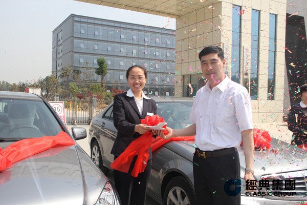 201351日上午,經典集團舉行第三屆“五一勞動楷模”授車儀式,4名優秀員工獲得了公司獎勵的“奔馳C180”轎車。至此,經典集團已連續三年累計向員工獎勵轎車60余輛。
