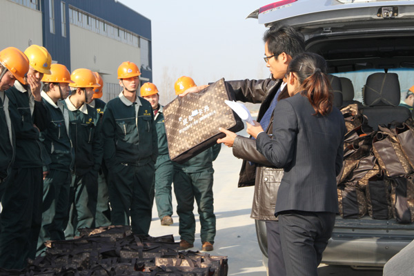 隨著天氣不斷轉(zhuǎn)涼,公司切實(shí)為職工健康著想,做好職工保暖工作,特斥資140多萬(wàn)元,在濟(jì)寧貴和購(gòu)物中心訂購(gòu)了一批高檔兔毛“皮爾卡丹”皮衣,并分批發(fā)放到每一個(gè)員工手中。