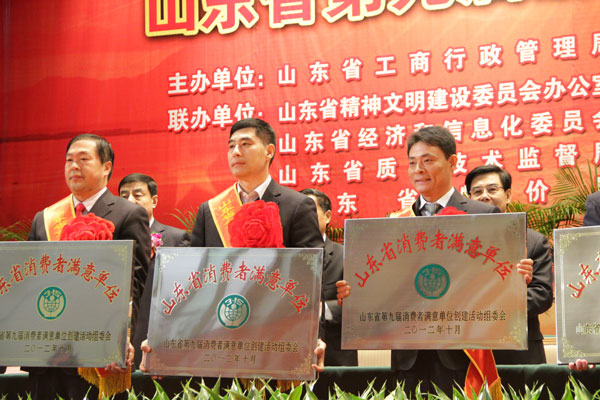 此次活動經過消費者滿意度調查、各市初評、材料審查、省考評組考評、征求主管部門意見、省評審委員會審定、社會公示等流程,由省消協、省文明辦、省工商局、省質監局、省衛生廳、省物價局、省總工會等13個部門共同認可肯定。該項榮譽的獲得標志著我公司的商品質量及服務水平不僅得到了濟寧地區廣大消費者的高度認可,在省、乃至全國也具有了一定的知名度。山東省副省長張建國同志也指出,消費者滿意單位是塊“金字招牌”,是政府、社會和廣大消費者對誠實守信、依法經營者的褒獎與認可。