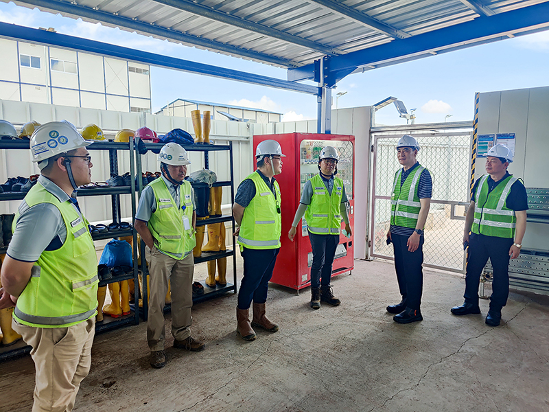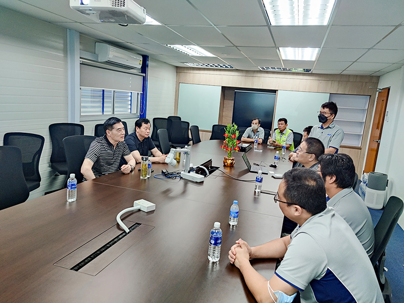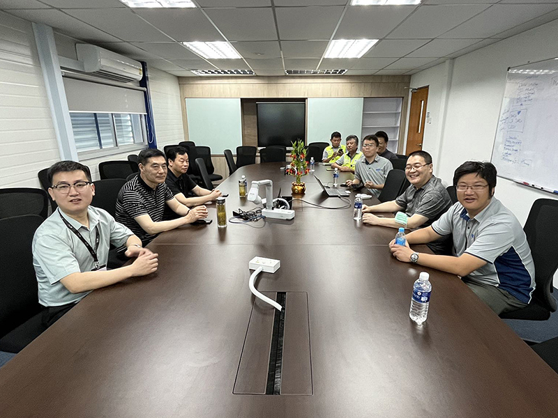 中國京冶建設工程(新加坡)有限公司執行副總裁許亞男,執行副總裁陳曉冬,鋼結構高級運營經理翟東,鋼結構運營副經理胡明陪同參觀座談。