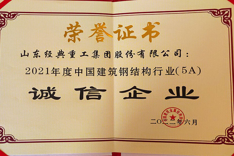 公司榮獲中國建筑鋼結構行業5A誠信企業稱號