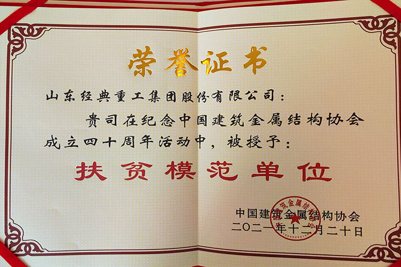 公司榮獲中國建筑金屬結構協會扶貧模范單位稱號